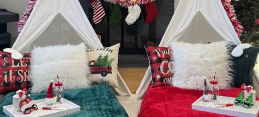If you’re looking for a fun way to make the holidays feel extra magical for the kids, I’m offering holiday teepee slumber setups. I have a variety of color themes for both Christmas and NYE, and always happy to customize.